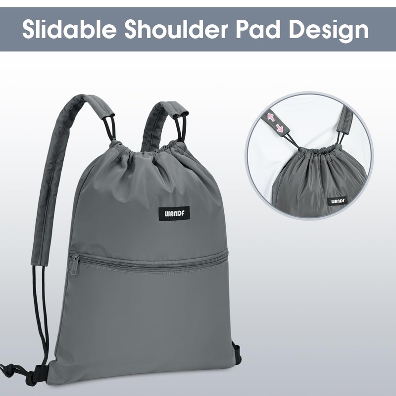 WANDF Drawstring Backpack Sports Gym Bag with Shoulder Pads Water Resistant String Bag Cinch Bag for Women Men (Grey)