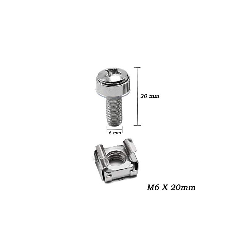 Features: High quality cabinet cage nuts and screws Package includes: cage nuts x 50pcs, screws x 50pcs, Washers x 50pcs Size: M6 x 20 Easily Mount Equipment Inside Your Rack Compatible with all square-hole racks Zinc-plated construction ensures durability These M6 Mounting Screws and Cage Nuts are convenient to have on hand for installing server, network, AV and other rackmount equipment securely into your storage cabinet or server rack. The pack includes 50 screws and 50 nuts, providing enough mounting hardware to setup any rack you are working on.