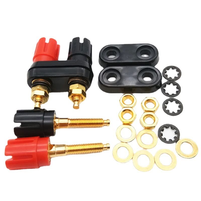 This terminal block can be split into left and right channel, excellent quality, high cost performance, perfect for DIY amplifier speakers. Pure copper with gold plating, good conductivity, stable signal transmission. No welding, easy to install, just screw in place.