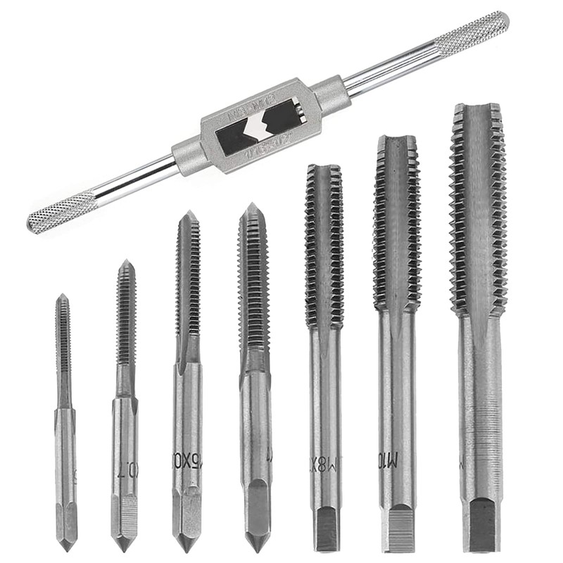 WANGR 8Pcs Bearing Steel Threaded Taps,Screw Tap Set with Straight Groove Taps + Tap Wrenches1/16in-1/2in,M3-M12Tapping Tool