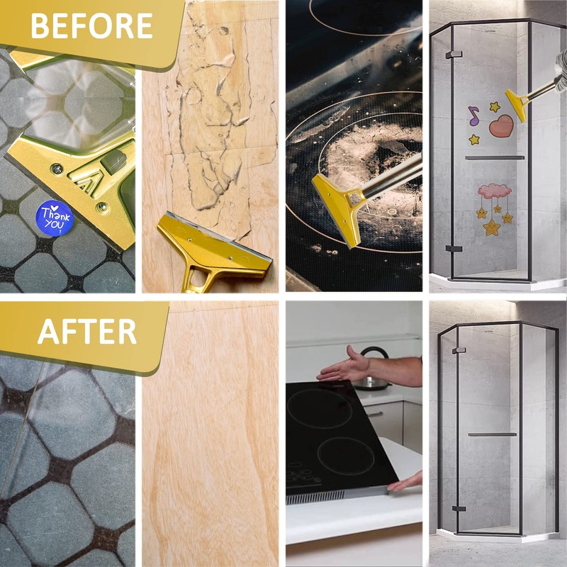 - [DESIGN FEATURES]: The handle of this scraper tool has an excellent grip and makes them comfortable to use for less hand fatigue. The blade is extremely sharp. Scraper tool makes cleaning easy, simple and efficient.Changing blades is easy and convenient.