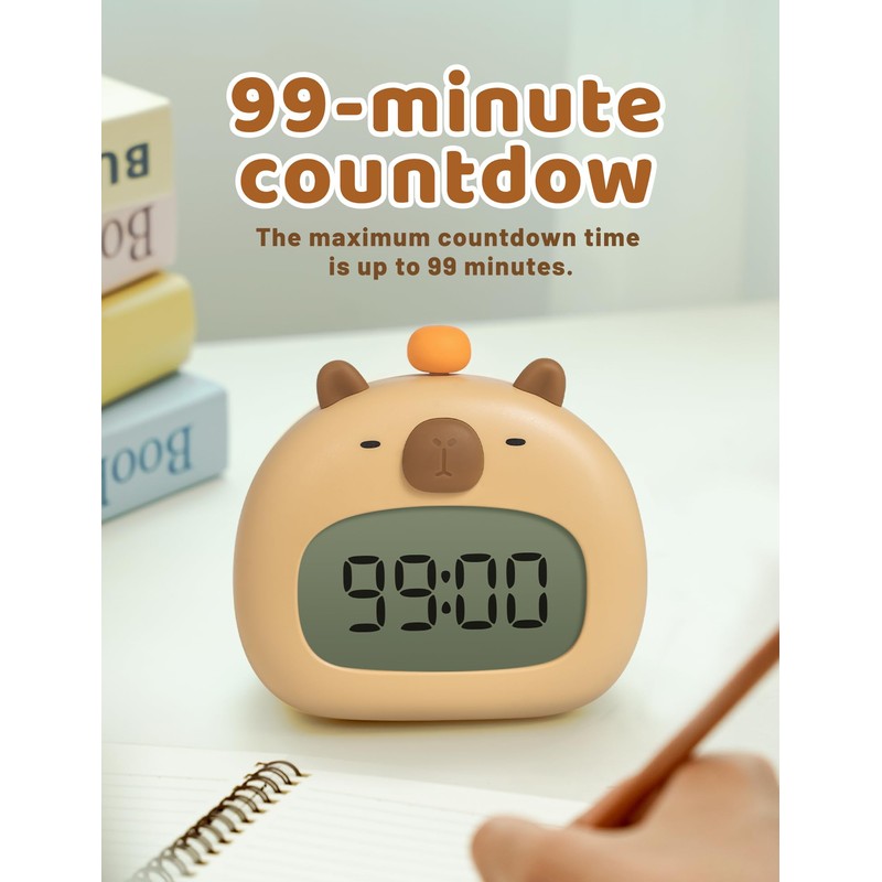 - ?Countdown FunctionAllows Your Child to Become a Self-Disciplined "Little Housekeeper", Reminders Time Spent Playing with Toys, Watching Tv, Studying, and Reading to Cultivating Good Habits.Cute capibara alarm clock bring happy.