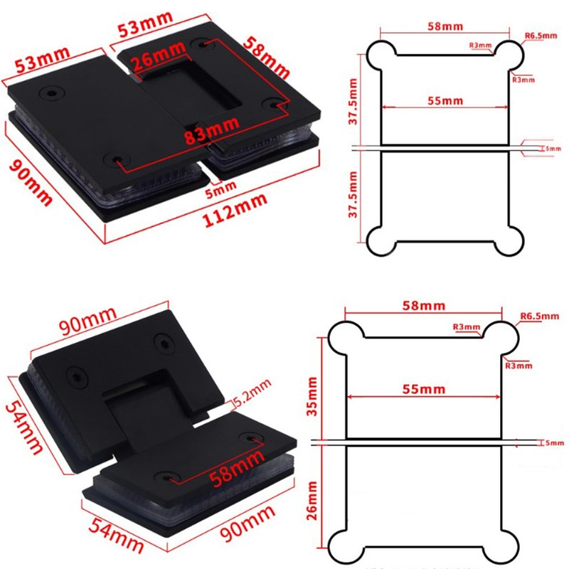 - Product Dimensions :4.5"L x 3.5"W,Glass door hinges are suitable for thick glass from 5/16 to 1/2 inch (8 mm-12 mm) thickness with a maximum bearing of 120 lbs.