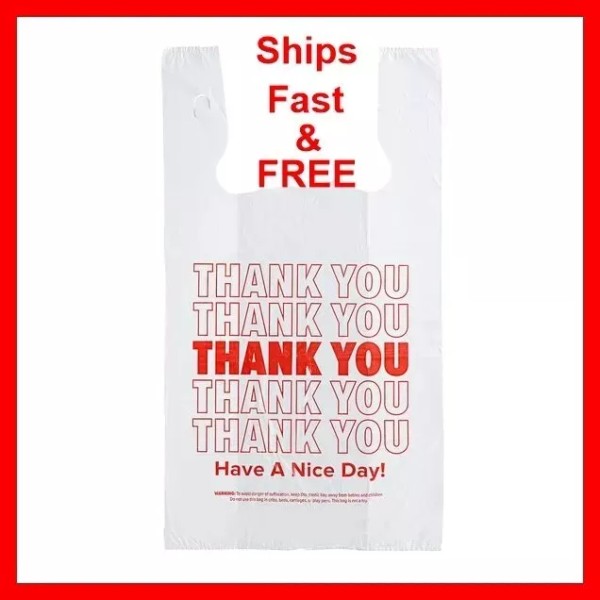 WANOWA Thank You T Shirt Plastic Bags (1000/Case) - Shopping Bags - WHITE Small 14 MIC