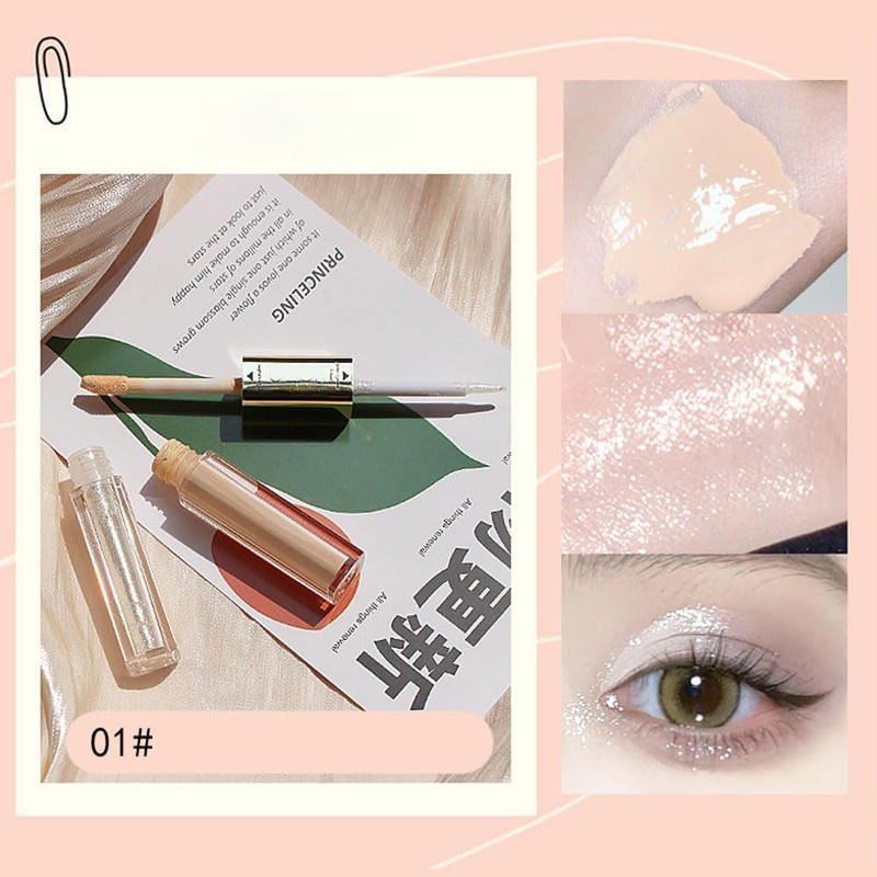 WanTuoluo Double-Headed Liquid Sparkling Eyeshadow Eyeliner Pen for Women, Matte Dark Circle Concealer & Glitter Shimmer Eye Makeup, Highlighter Brightener Stick,Waterproof Quick - Drying (01#)