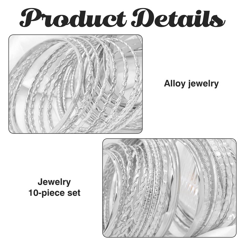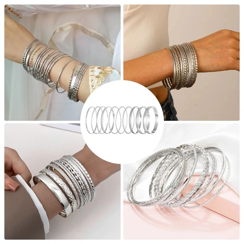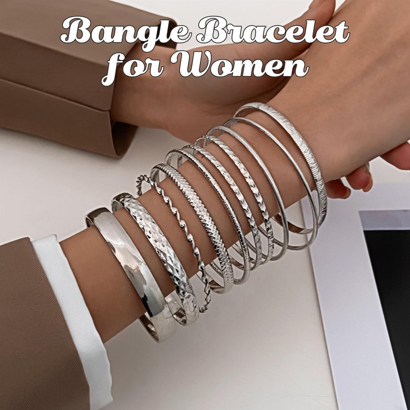 - Versatile bracelet set: this set contains 10 bangles. The quantity is enough to allow a variety of combinations. With these bracelets you can create a unique, boho style. The textured designs add extra style to any outfit. You can wear the bracelets individually or in a stack to create different looks.