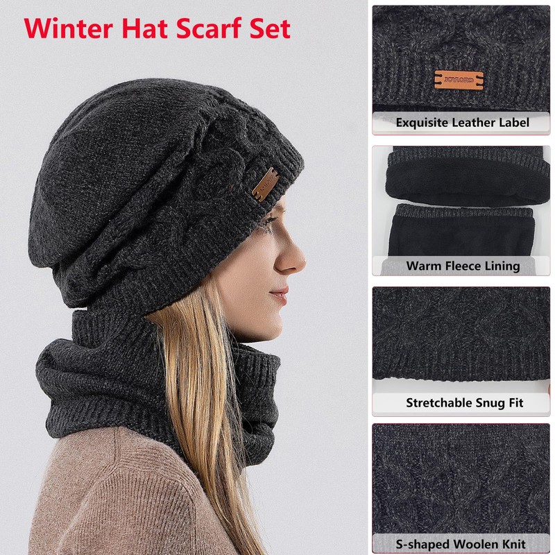 - LIGHTWEIGHT AND WARM This women's hat is soft lined and lightweight, it won't squeeze on your head. When you are on the go, you can pull the folded edge down to cover your ears, which keeps your head, forehead and ears warm. The hat scarf set can be used individually or together as needed.