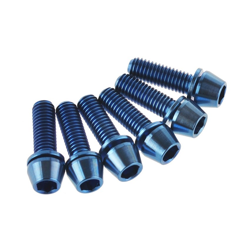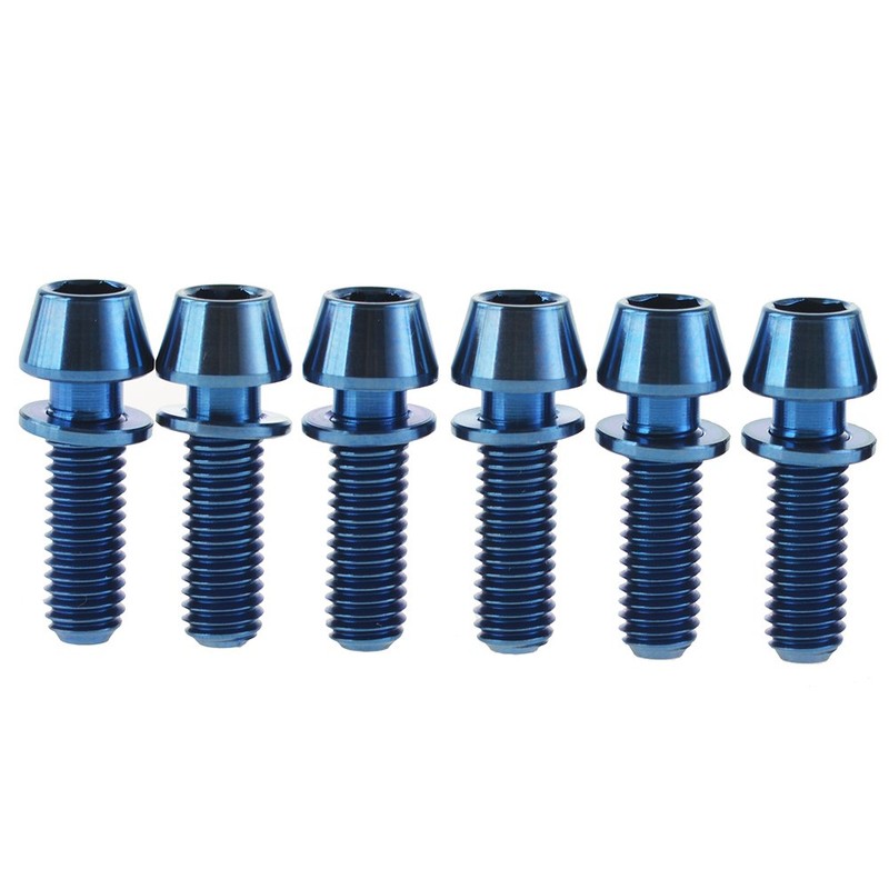 Wanyifa Titanium M5x20mm with Washer Allen Hex Tapered Bolts Screw for Bicycle Stem Pack of 6 (Blue)