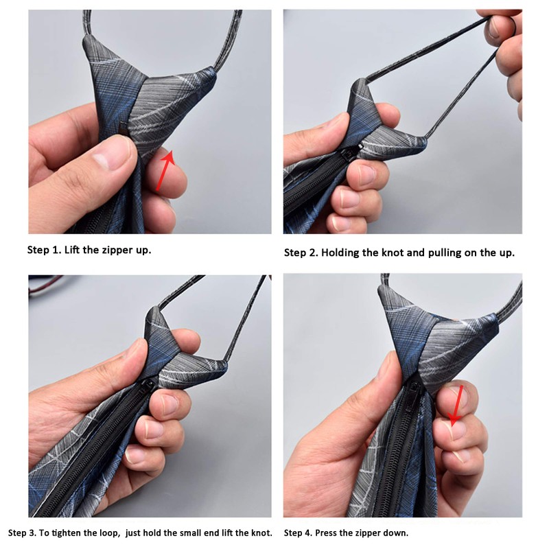 - ♥ Zip design -- This tie has a zip. With pull and pull out, the tie can be easily worn avoiding cumbersome knotting. Quick and easy to use.