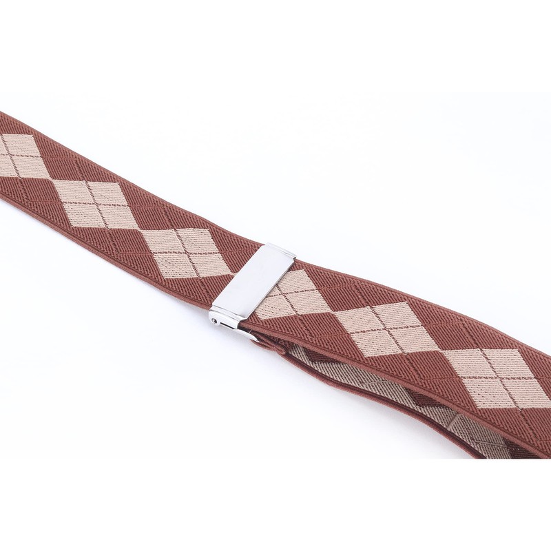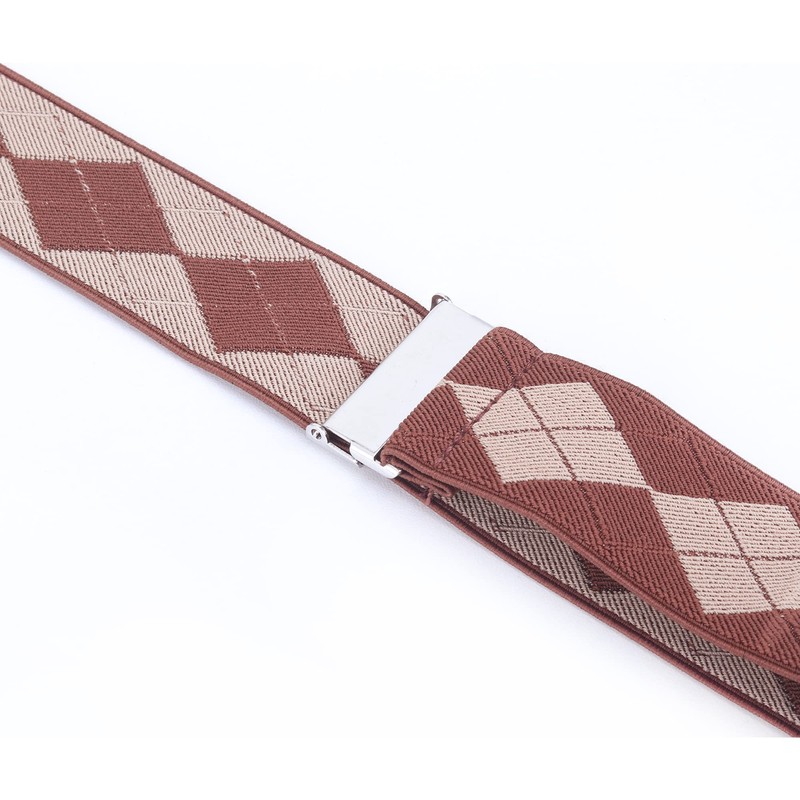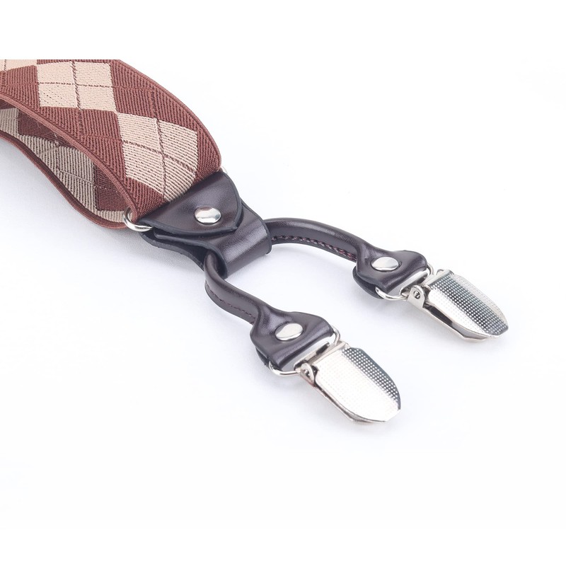 WANYING Men's Y-shape 3.5 cm wide 6 clips braces and bow ties 2 in 1 set highly elastic length adjustable casual business - for height up to 200 cm, D01 Diamond Pattern Brown with 2 Bow Ties
