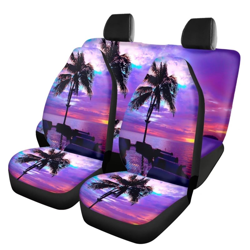 Wanyint Hawaiian Palm Tree Purple Car Seat Covers Set of 4, Front and Rear Split Bench Protector, Easy to Install, Universal Fit for Most Vehicles Gift for Women