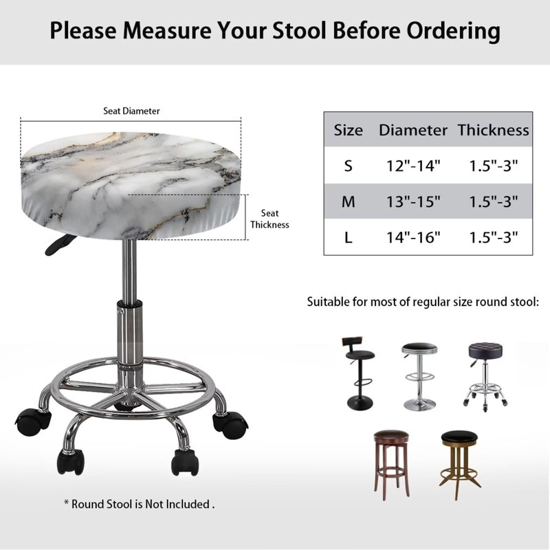- Size: Available in sizes S, M, and L, our stool covers fit most round stools from 12 to 16 inches in diameter. (Note: Not suitable for other shapes or chairs with backrest connections. Please measure your stool size before purchasing.)