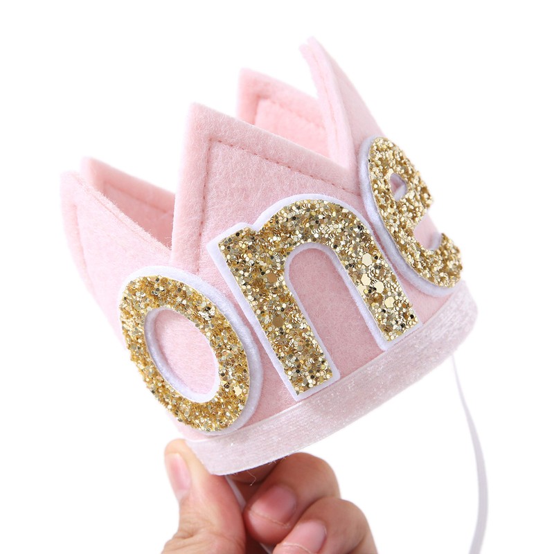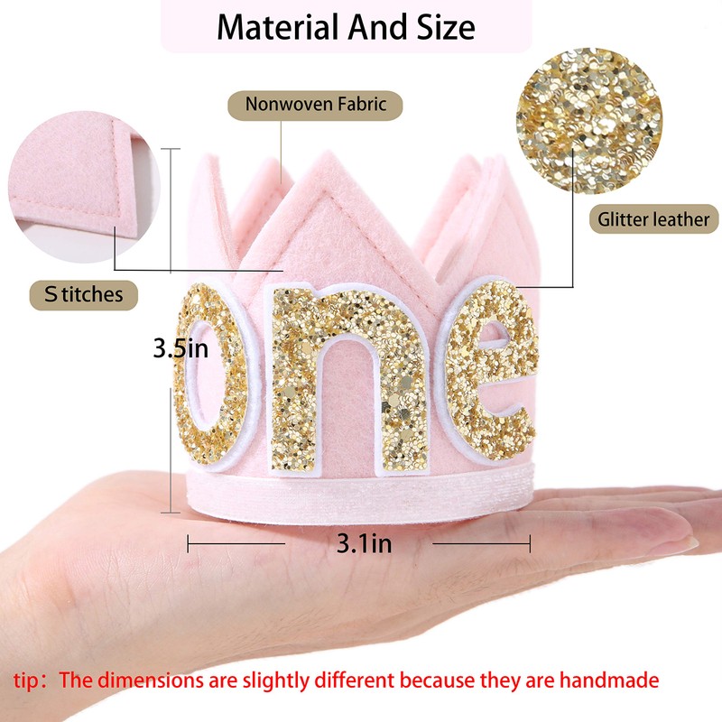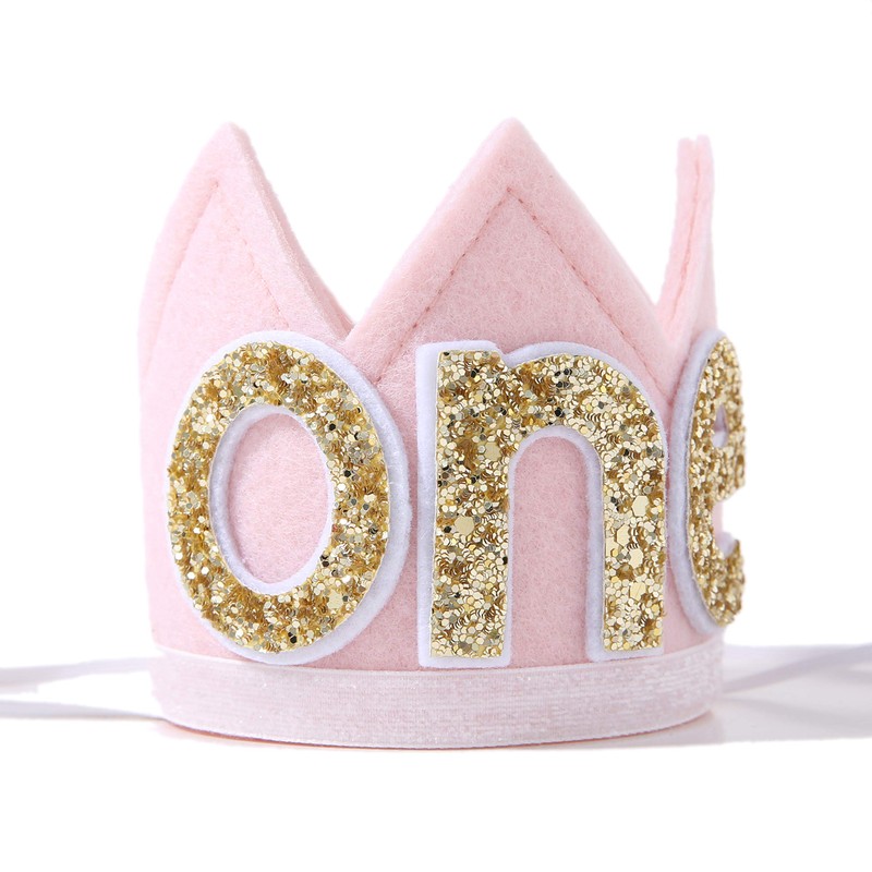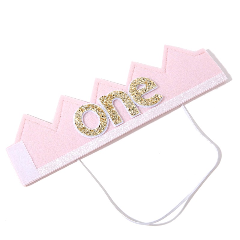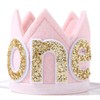 Corona Baby One para primer cumpleaños: diadema para fiesta de primer cumpleaños, corona con purpurina para niño o niña, accesorio de fotografía para recién nacidos, recuerdo y regalos de príncipe o princesa (sombrero de corona rosa).