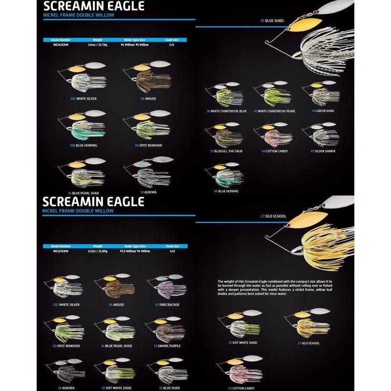 * Designed by pro angler Mike McClelland * Bass Eagle pro series skirts * Tandem willow blades * Ready to perform straight out of the package