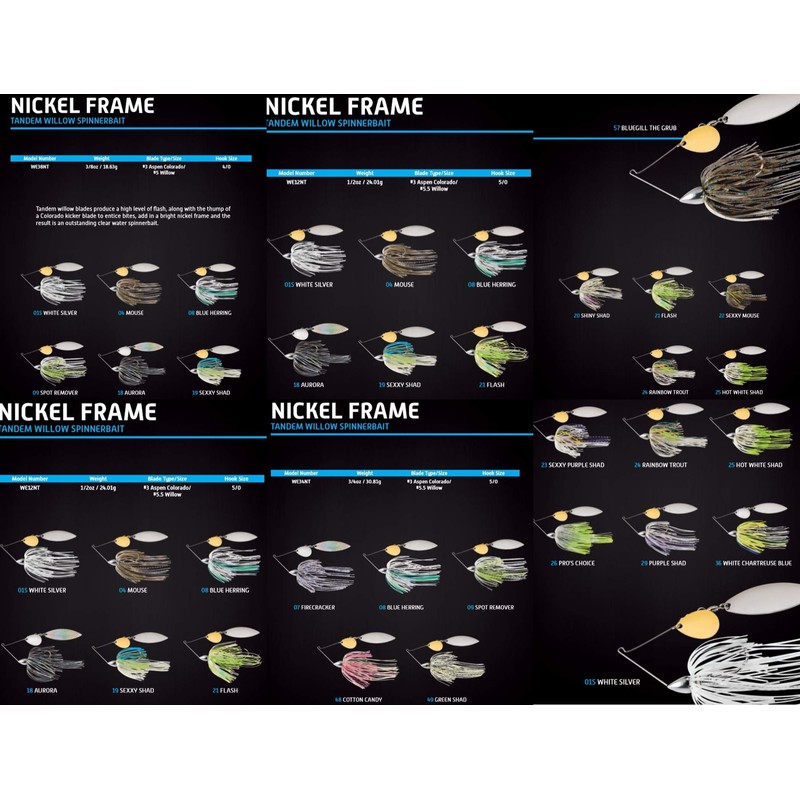 War Eagle Nickel Frame Tandem Willow Spinnerbait Flash Skirt 3/8 oz.