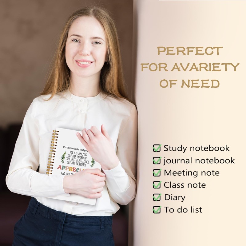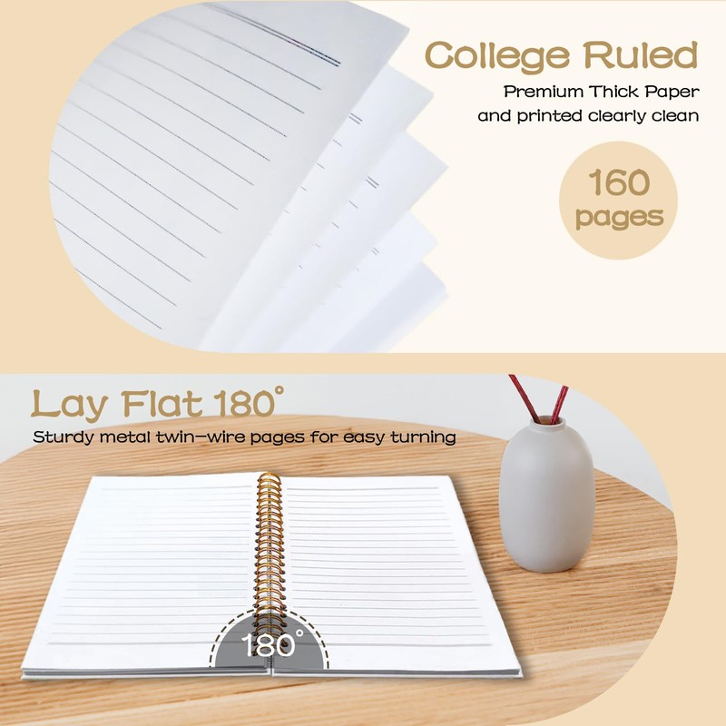 - Spiral Binding: Spiral design allows the notebook to open flat or fold over easily, so you can write comfortably on both sides of the page.