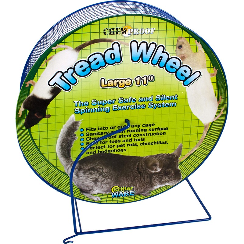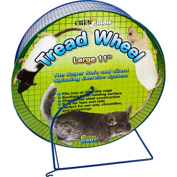 Ware Manufacturing's Large Sized Metal Pet Tread Exercise Wheel is a great toy for providing your pet a way to exercise and play. This exercise wheel is durable, made out of chew proof powder coated metal wire that is built to last. This exercise wheel is completely safe for your pets, the pet tread protects your pets tails and feet. Your animals will love to run in this exercise wheel which is great for promoting play and leads to a long, happy and active life. Measures 10-3/4" Width X 7" Depth X 12-1/2" Height.