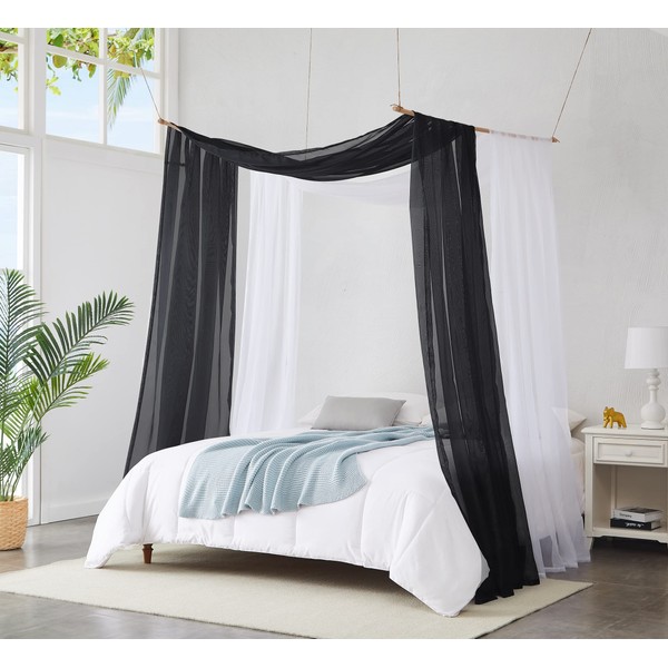 WARM HOME DESIGNS Set of 2 White & Black Canopy Bed Curtains in 55 x 288 Inch (24 Feet) Size. 2 King Bed Canopy Curtains Can Be Turned Into Kids Bed Tent or Bed Canopy for Girls. BE White & Black 288"