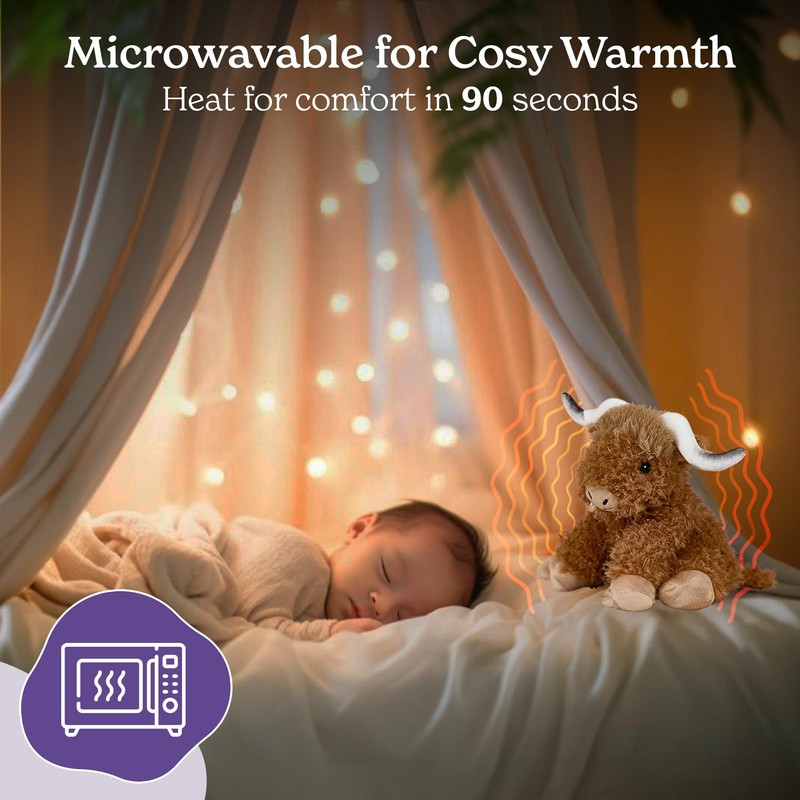 - Soft & Cuddly for All Ages: Crafted from plush, snuggly materials this microwavable Highland Cow plush toy is suitable for kids, teens, and adults seeking comfort day or night.