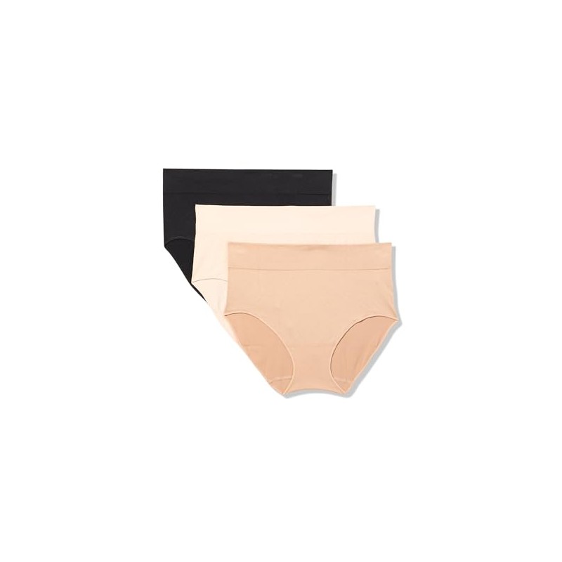 Warner's Women's Blissful Benefits No Pinching No Problems Dig-Free Seamless Stretch High-Waist Brief 3-Pack WRW251BR06, Butterscotch/Toasted Almond/Black, 3X-Large