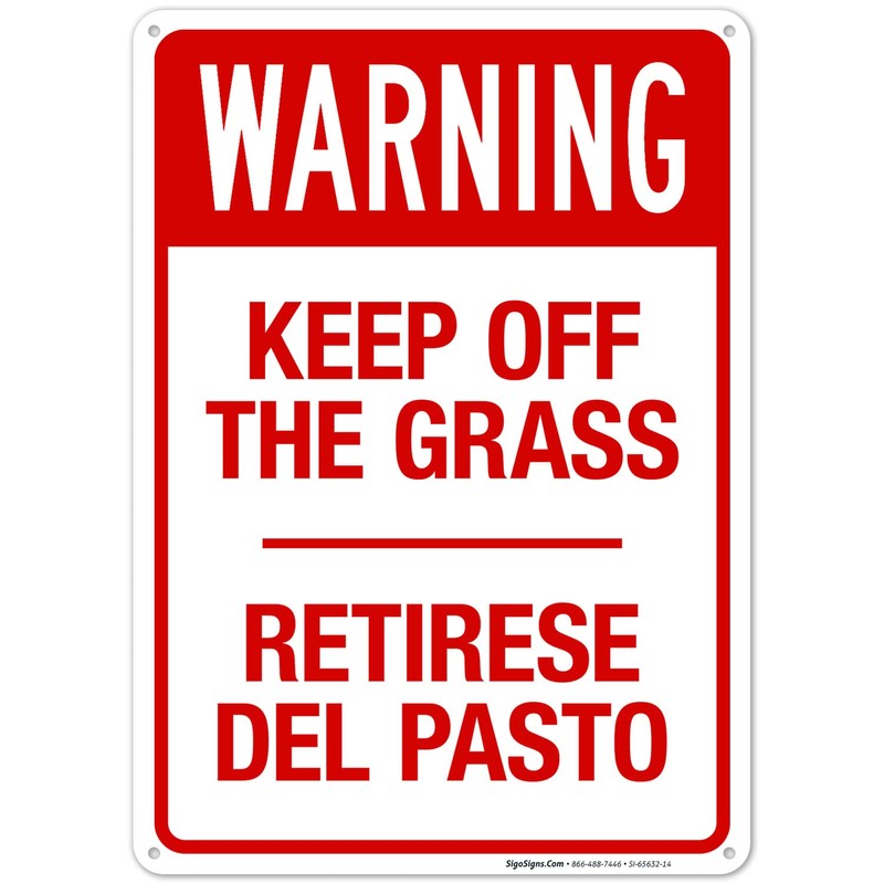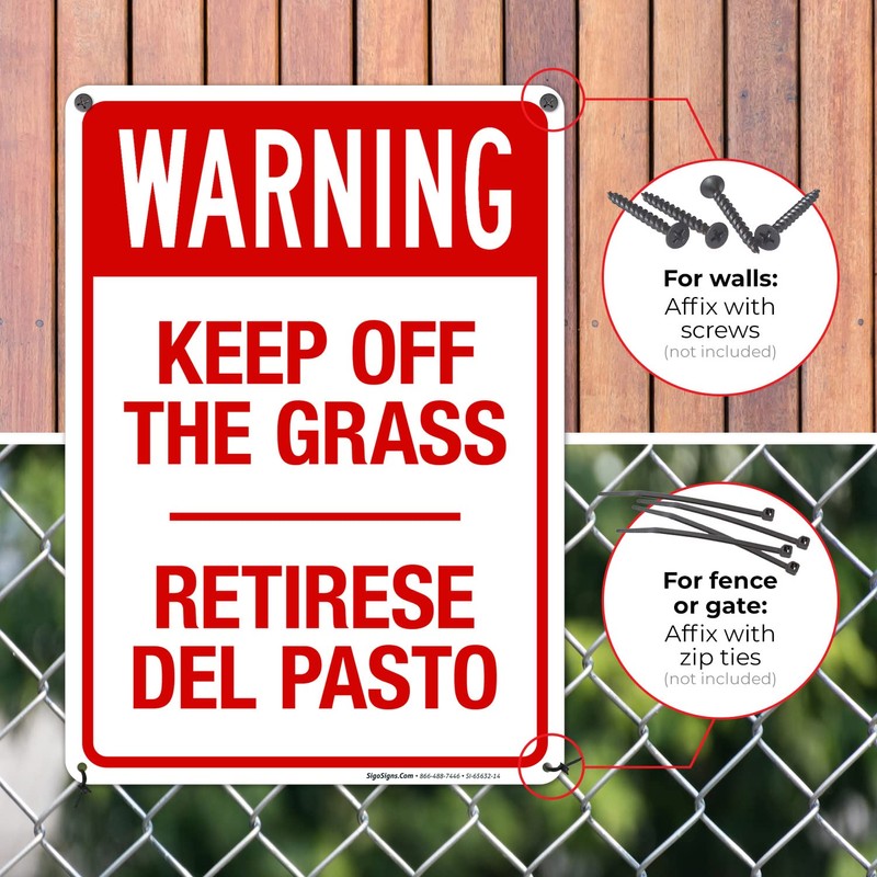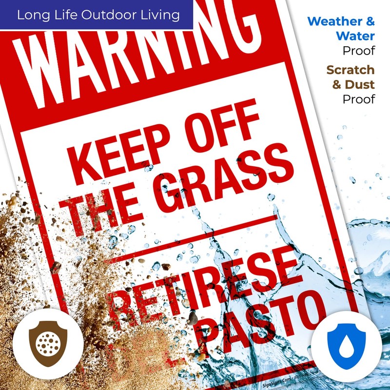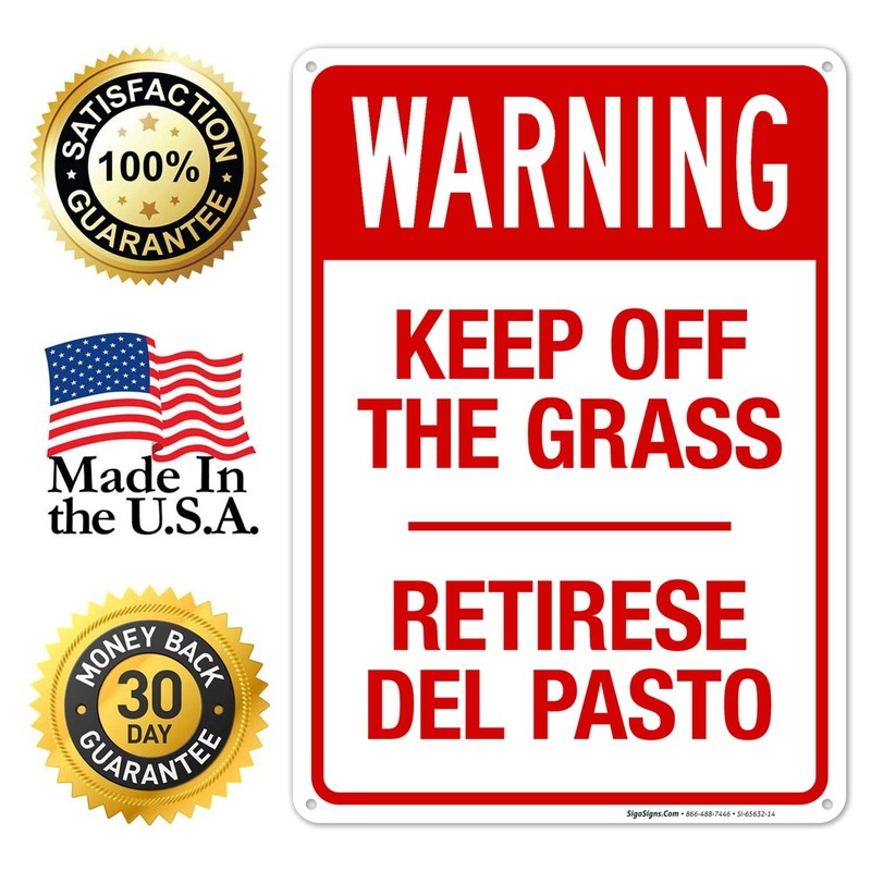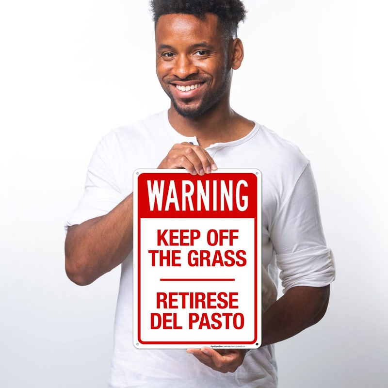 Warning Keep Off The Grass Bilingual Sign, 10x14 Inches, 55 mil Thick HDPS (high Density polystyrene), Made in USA