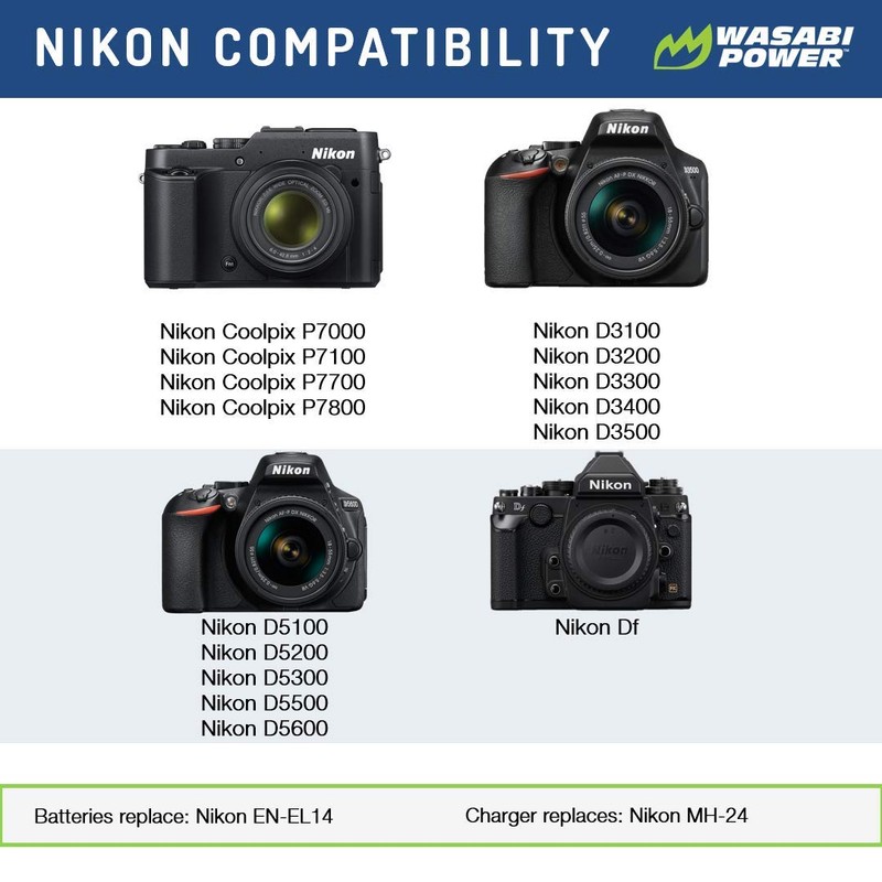 Wasabi Power Battery for Nikon EN-EL14, EN-EL14a and Nikon Coolpix P7000, P7100, P7700, P7800, D3100, D3200, D3300, D5100, D5200, D5300, Df