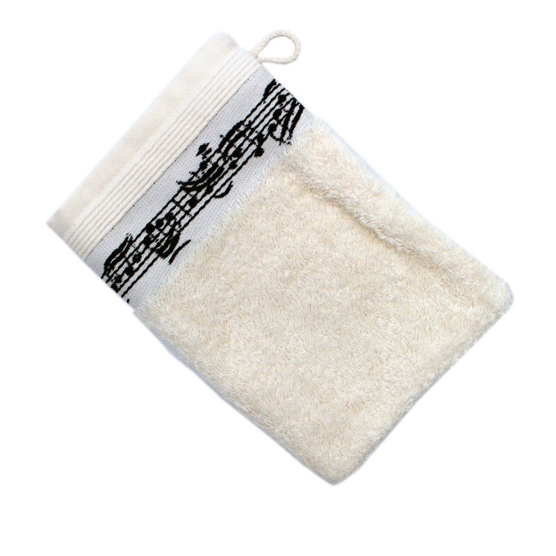 Wash Mitt with Notes Motif Cream - Great Gift for Musicians