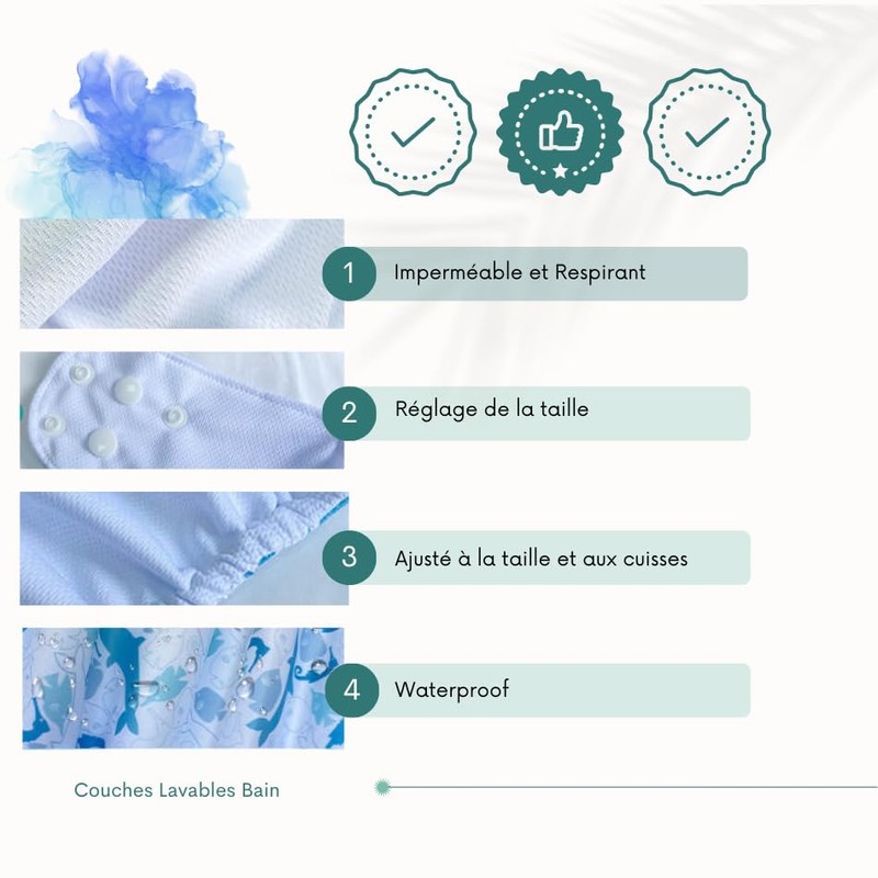 💦 You love spending time at the pool and at the beach on your holiday.Your kids love to play in the water and discover new things. However, you have an environmental concern. You worry about having to throw disposable diapers after each swim, knowing that it could have an impact on the environment. Despite this ecological concern, you also have economic concerns because disposable bath diapers cost an average of 85 cents each and with your children's many baths it could quickly become expensive. You are looking for an ecological and economical solution, while thinking about the well-being of your child. The diaper should be comfortable for your child and not interfere with his movements in the water. Children, transport, work, home management… All this leaves very little free time to enjoy … So you want to spend wonderful moments with your loved ones during your outings … without having to worry about the environment or costs. Your wish is to create precious memories with your children and enjoy every moment spent together.。 💦 You love spending time at the pool and at the beach on your holiday.Your kids love to play in the water and discover new things. However, you have an environmental concern. You worry about having to throw disposable diapers after each swim, knowing that it could have an impact on the environment. Despite this ecological concern, you also have economic concerns because disposable bath diapers cost an average of 85 cents each and with your children's many baths it could quickly become expensive.