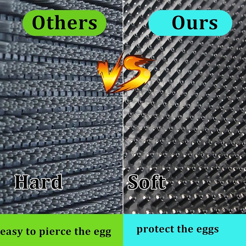 - Reasonable Design: The slotted structure of the nesting mat allows feces to fall to the bottom and away from the chickens, while supporting the airflow. This prevents critters, dampness and unpleasant odors, and creates a healthier environment for your chickens.