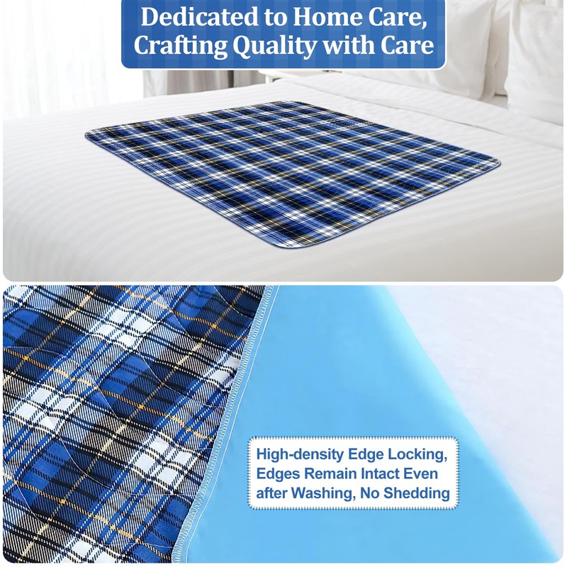 - Checkered Pattern, Sturdy and Stain-Resistant: Featuring a classic checkered pattern, this washable incontinence bed pad comes in three stylish colors. The sturdy fabric resists stains, ensuring long-lasting durability while maintaining a neat, attractive appearance.