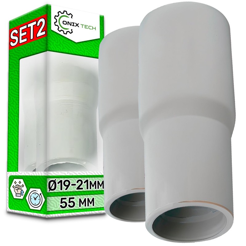 - Features: adapter made of robust plastic, with a diameter of 19-21 mm and a length of 55 mm, suitable for connecting drain hoses of washing machines or dishwashers