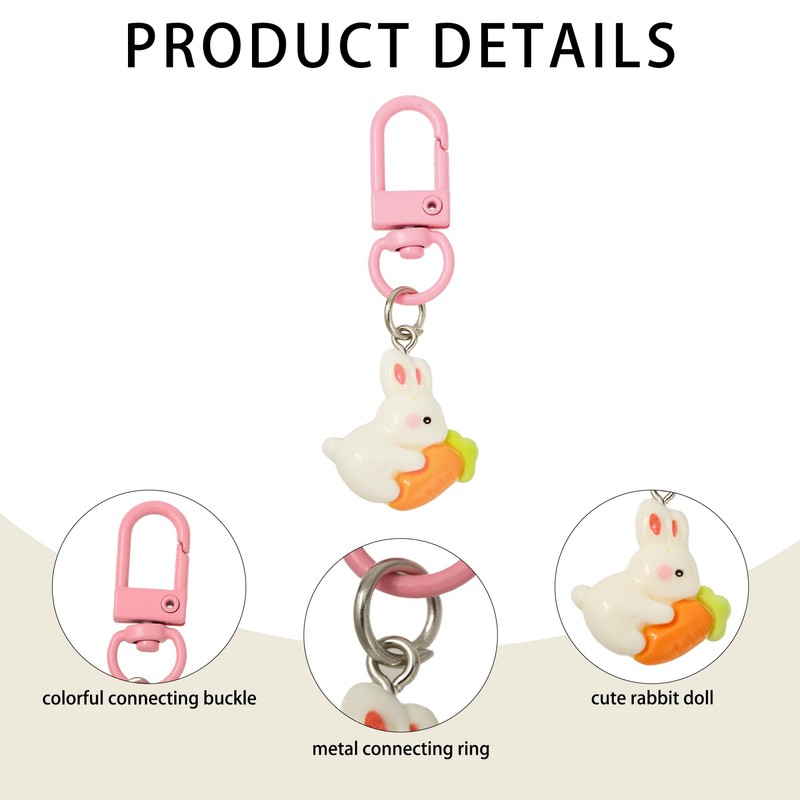 - ADORABLE BUNNY KEYRING SET – This set includes six charming rabbit keychains featuring cute flower and carrot designs, perfect for adding a playful touch to your keys or bags.