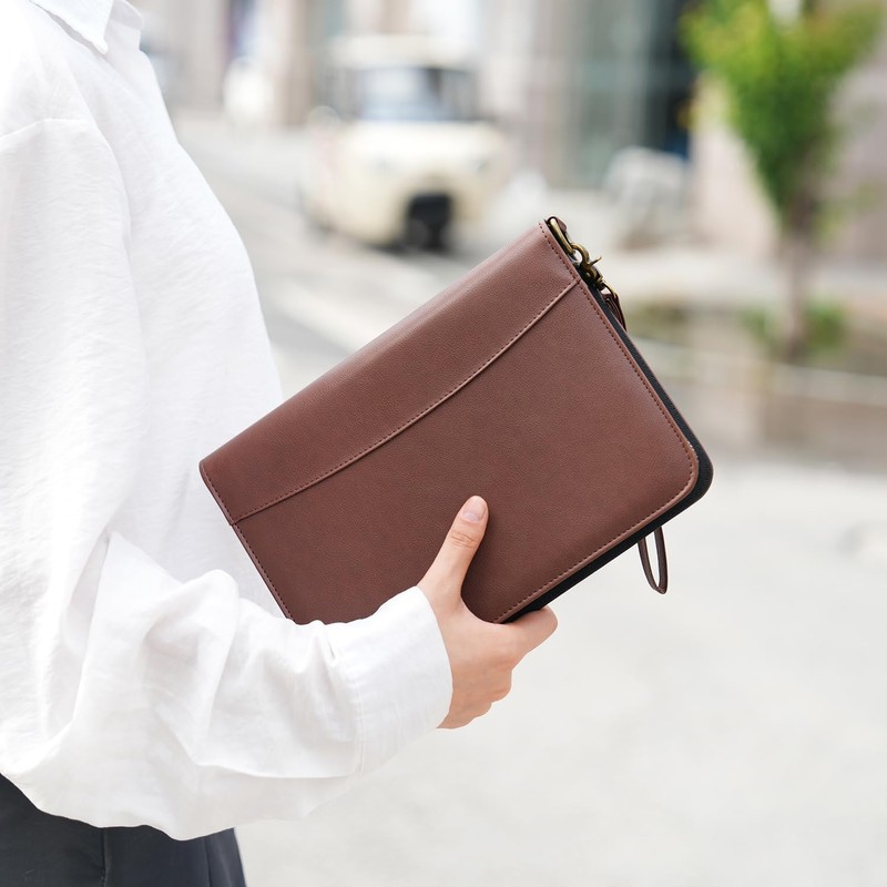 - PREMIUM LEATHER JOURNAL PORTFOLIO - Crafted from high-grade PU leather with elegant stitching and durable construction. This professional leather bound journal features secure metal zipper binder closure and convenient carry handle.