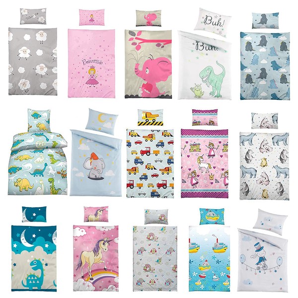 Wasserbett-Markenshop Children's Bed Linen, 100 x 135 cm + Pillow 40 x 60 cm, 100% Cotton with Various Motifs, Baby Bedding Set