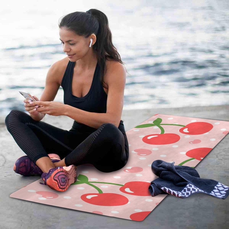 Wassud Yoga Mat Cherry Foldable Exercise Mat Non Slip Workout Mat with Storage Bag Pilates Floor Exercises Mat 71" x 26"