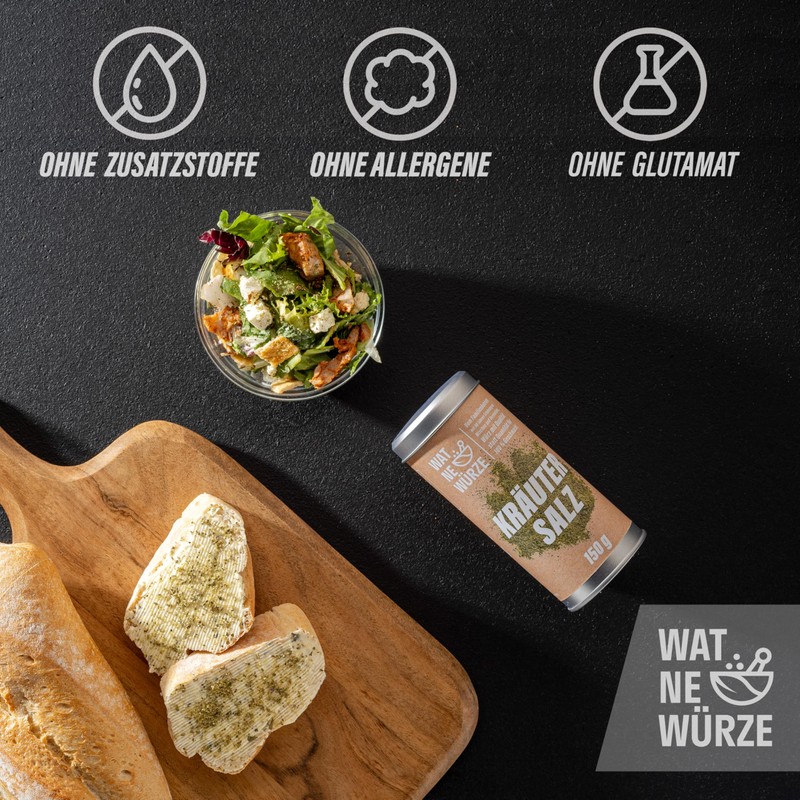 WAT NE WÜRZE Herbal Salt 150 g | Spice Mix Made of High-Quality Salt and Herbs | No Additives and Glutamate | Mediterranean Spice Salt Mix for Seasoning All Foods