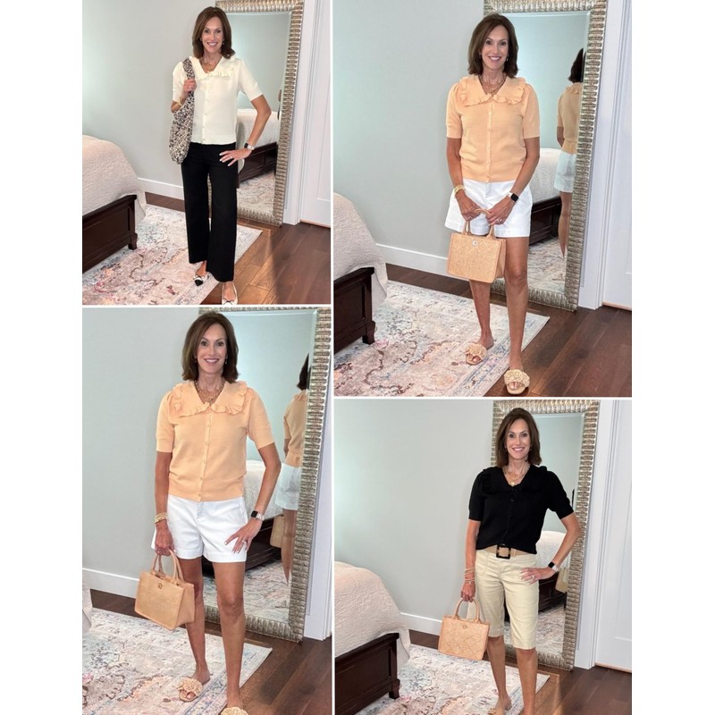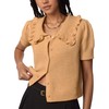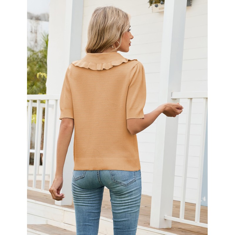 - Feature - Women's crochet knit top has a cute ruffle collar design, ribbed edge hemline detail, button down closure easy to pair more style, puff short sleeve offer a classic not stylish look, women loose knitted shirt is charming and flattering to wear