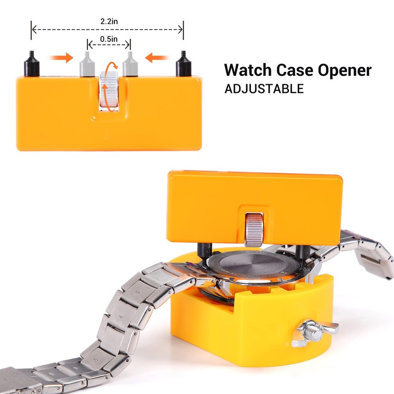 - PROFESSIONAL WATCH BACK REMOVER TOOL: These watch opener tool are perfect for mechanical, quartz, and sports watches. The adjustable two-claw cover opener can open the screw-in watch cover with a card slot (cover diameter: 0.5-2.2 inches), the pry knife can open the press-type cover, and the screwdriver can open the screw-fixed cover.