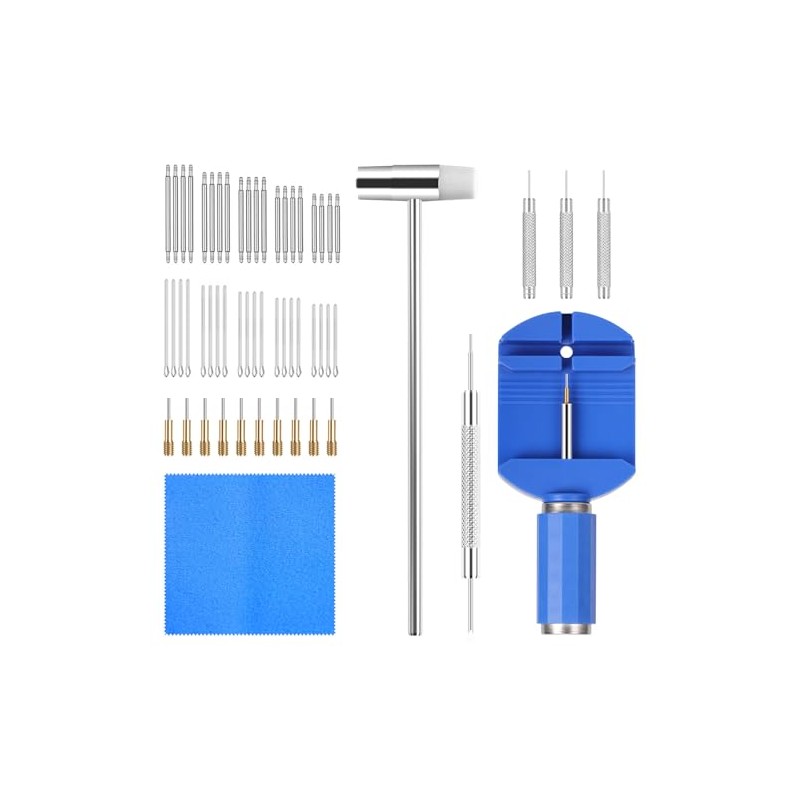 Watch Link Removal Kit, Watch Repair Kit Repair Tools & Kits, Watch Band Adjustment Strap Pin Removal Tool Kit, Watch Chain Sizing Bracelet Adjuster Resizing Tool with Pins, Spring Bar Tool, Hammer