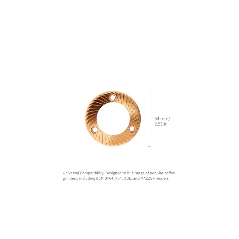- Universal Compatibility: Designed to fit a range of popular coffee grinders, including ECM DF64, P64, ODE, and MAZZER models, this burr disk offers versatility and convenience.