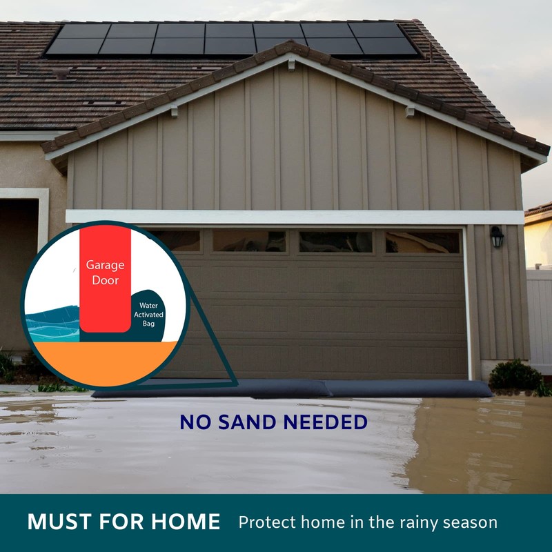 - Strong Water Absorption The garage water barrier can grow to 10cm in 5 minutes after absorbing water, which means the door flood barrier will be fully functional very quickly.