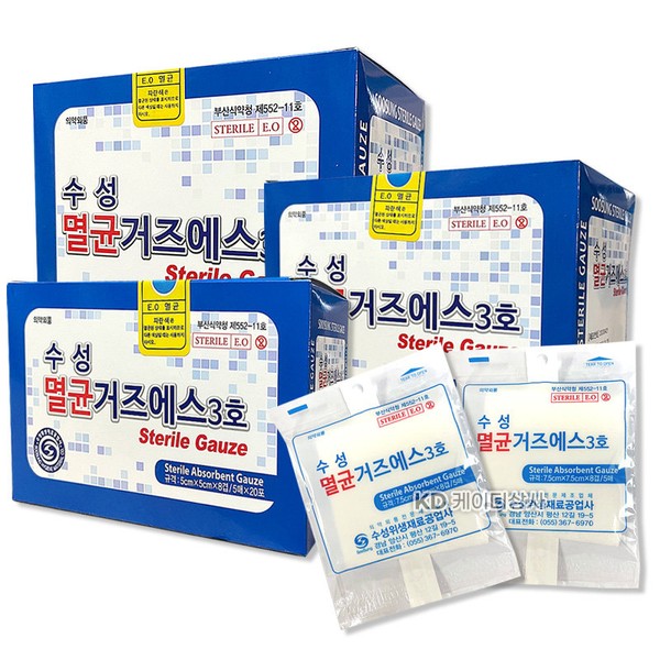 Water-based sterilized gauze 5cm 7.5cm 10cm individually packaged 5 sheets x 20 bags wound dressing gauze, sterilized gauze 10cm / 수성 멸균거즈 5cm 7.5cm 10cm 개별포장 5매x20포 상처드레싱 가제, 멸균거즈 10cm