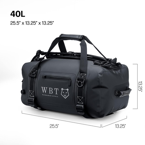 Water Bear Tactical Waterproof 40L Backpack/Duffel (40L, Black)