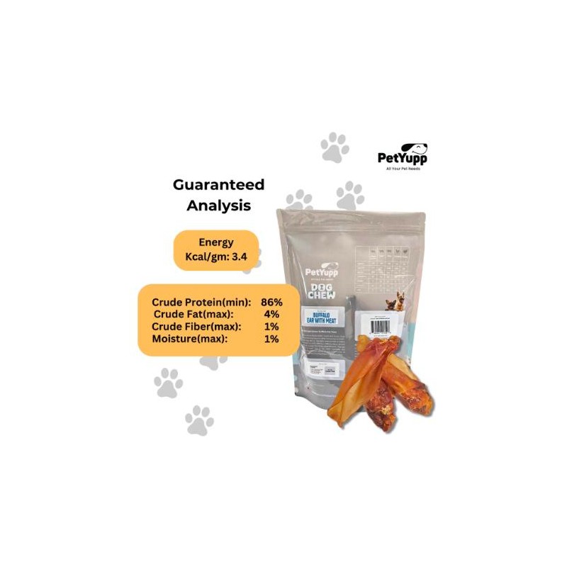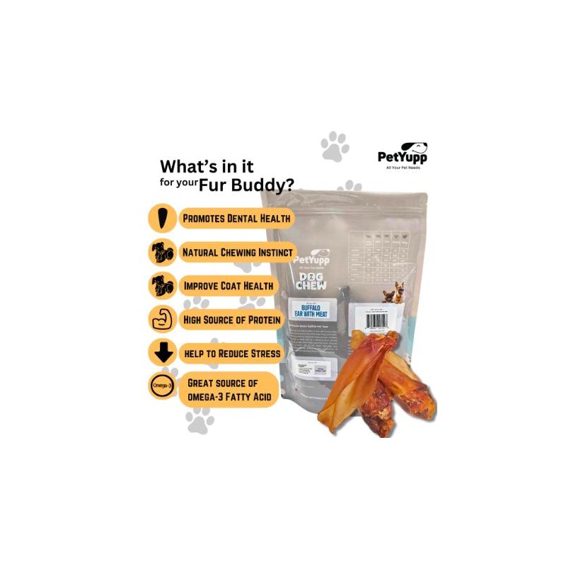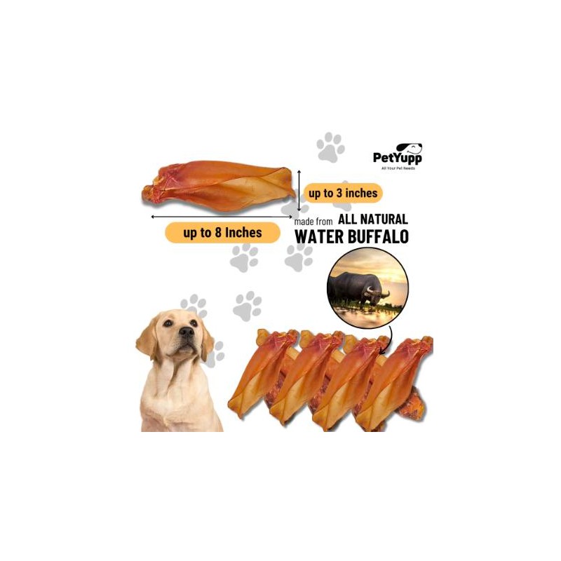 Water Buffalo Ear with Meat Dog Chew - Pack of 20