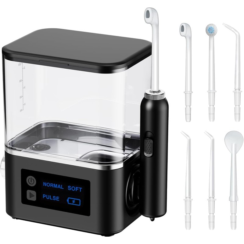 Water-Flosser-Teeth-Cleaner MAKJUNS Water Tank Dental Flosser with 10 Pressure Settings and 6 Tips IPX7 Waterproof Dental Oral Irrigator for Family(Black)
