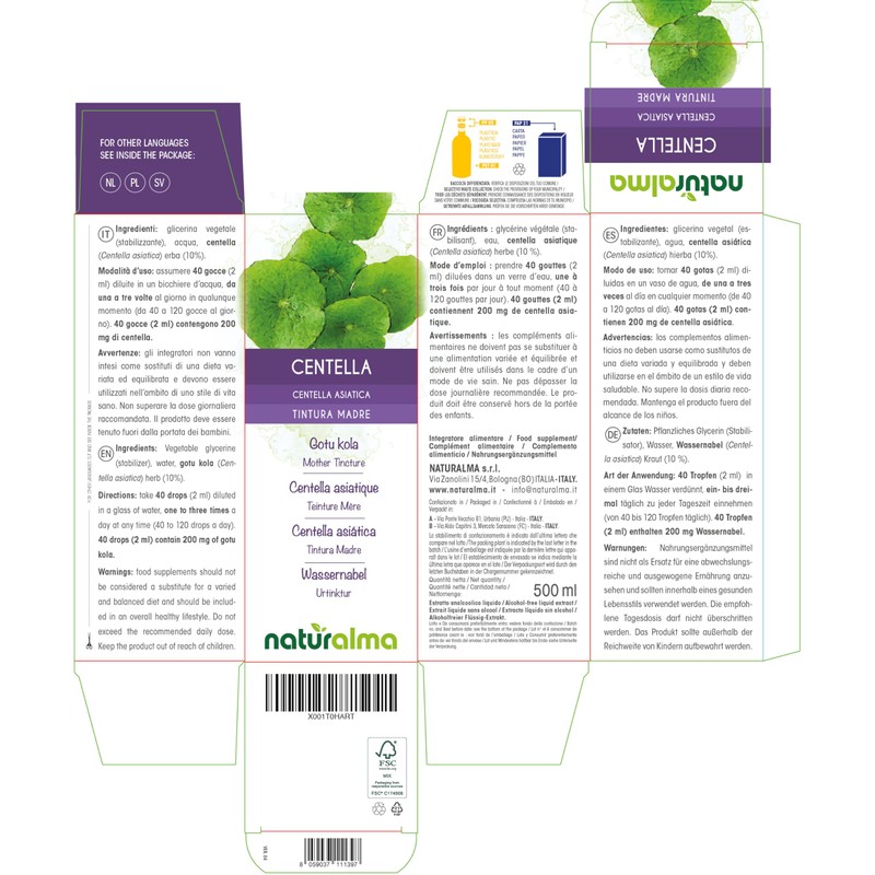 - Pennybird (Centella asiatica) herb mother tincture concentrated 1:10. 100% natural, alcohol free, no added sugar. Reported to the Italian Ministry of Health. Made in Italy. The dropper is not included in 500 ml format.