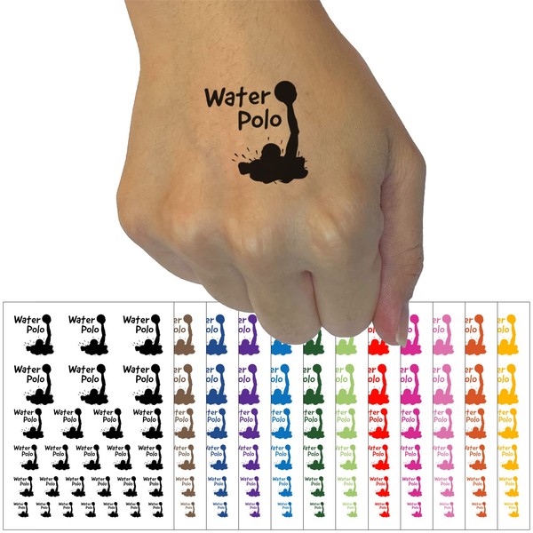 Water Polo Player in Water Fun Text Temporary Tattoo Water Resistant Fake Body Art Set Collection - Hot Pink (One Sheet)