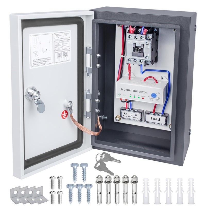 This water Pump Protection Box offers short circuit, overload, phase loss, and stall protection. Made from cold-rolled steel with waterproof, dustproof, and rust-resistant coating for durability. The interior wiring is organized with clear labeling, making installation easy. Includes all necessary installation components, suitable for protecting pumps, motors, and fans, and ideal for residential, industrial, and commercial use.