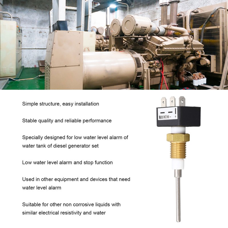 1、STABLE AND RELIABLE: Water tank level sensor has the advantages of simple structure, easy installation, stable quality and reliable performance 2、ALARM FUNCTION: The water level alarm sensor is specially designed for the low water level alarm of the water tank of the diesel generator set. When the water level of the water tank is lower than the probe position of the alarm sensor, the sensor output switch signal to the unit protection block, the unit controller and other diesel generator control devices to realize the low water level alarm and stop function 3、WIDE APPLICATION: Water tank level alarm can also be used in other equipment and devices that need water level alarm, suitable for other non corrosive liquids with similar electrical resistivity and water 4、TECHNICAL PARAMETERS: Liquid level sensor installation thread is 1/4NPT, working mode for NO normally open, operating voltage is 5-35VDC 5、WITH FITTINGS: Water tank level sensor equipped with 6 fittings, easy for you to install and use, complete accessories guarantees convenient operation