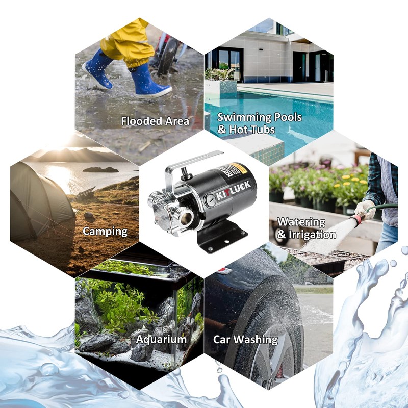 - 【Multiple Application】 KITLUCK utility water pump for pool draining works efficiency in aquariums, rain barrels, filling water beds, flushing water heaters, flooded areas drainage, clogged sinks, soggy basement, flooded Cellar, etc. It also performs well in garden watering, car washing and other housework requirement.
